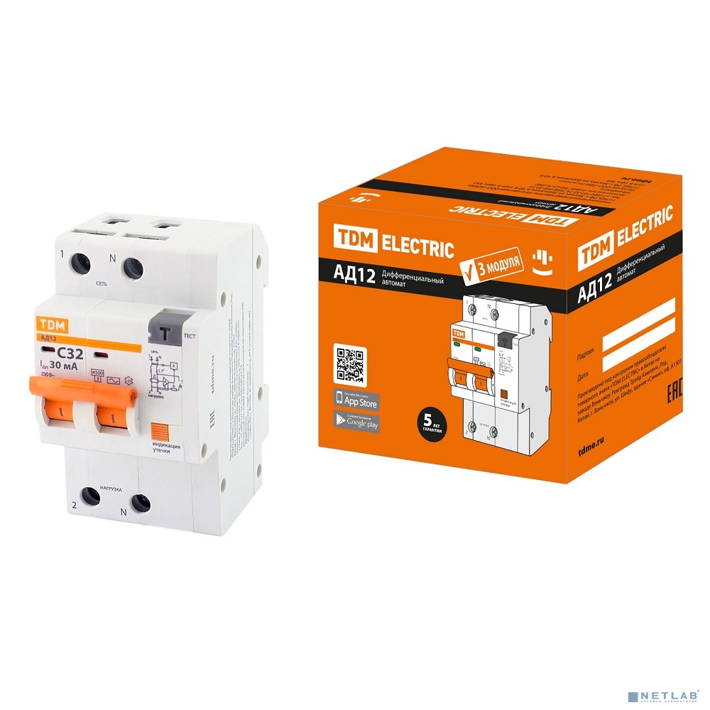 TDM SQ0204-0114 Диф.автомат АД12 2P, C32, 30мА, 4,5кА, тип АС, 3 мод,