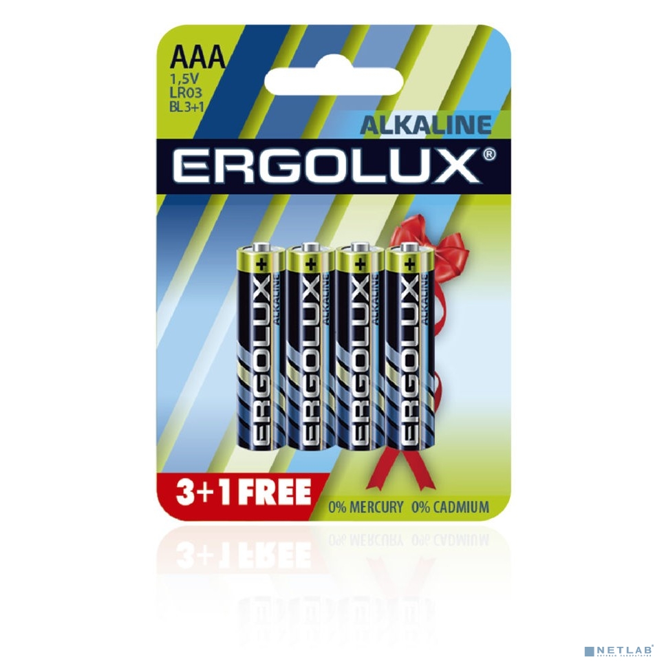 Ergolux Alkaline LR03 BL 3+1(FREE) (LR03 BL3+1, батарейка,1.5В) (4шт. в уп-ке)