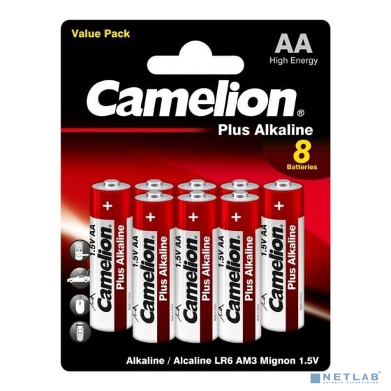 Camelion Plus Alkaline BL8 LR6 (LR6-BP5+3, батарейка,1.5В) (8 шт. в уп-ке)