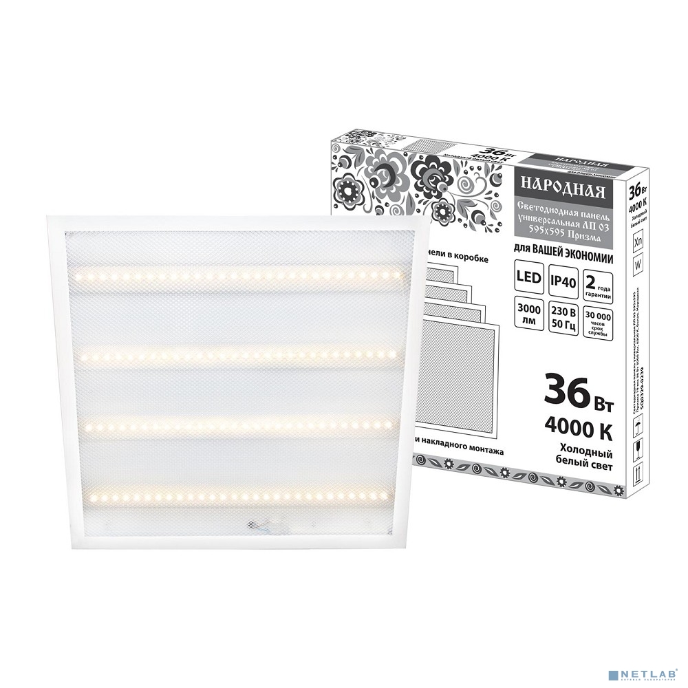 TDM SQ0329-0239 Светодиодная панель универсальная ЛП 03 595х595 Призма 19 мм 36 Вт 3000 Лм, 4000 К, белая, Народная