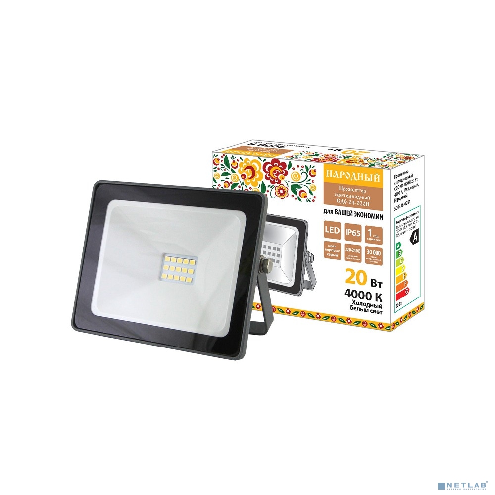 TDM SQ0336-0281 Прожектор светодиодный СДО-04-020Н 20 Вт, 4000 К, IP65, серый, Народный