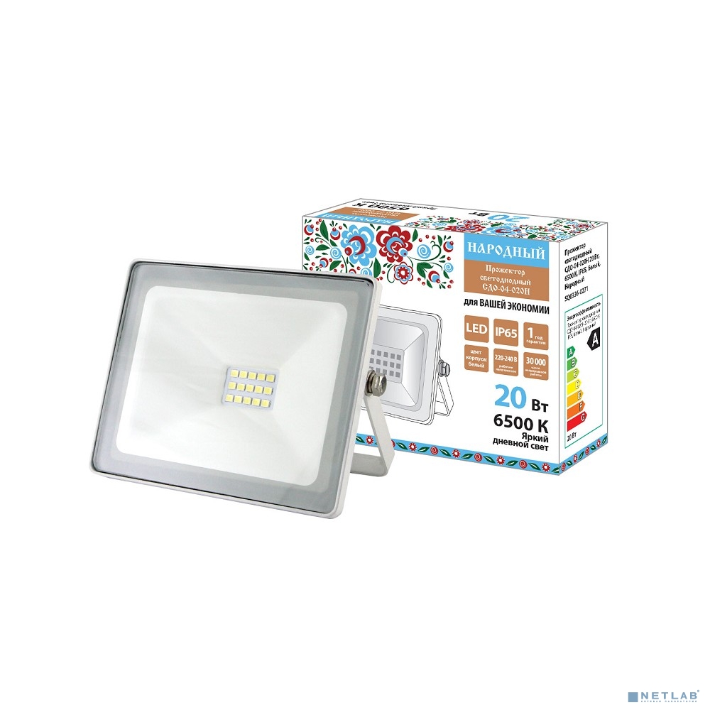 TDM SQ0336-0271 Прожектор светодиодный СДО-04-020Н 20 Вт, 6500 К, IP65, белый, Народный