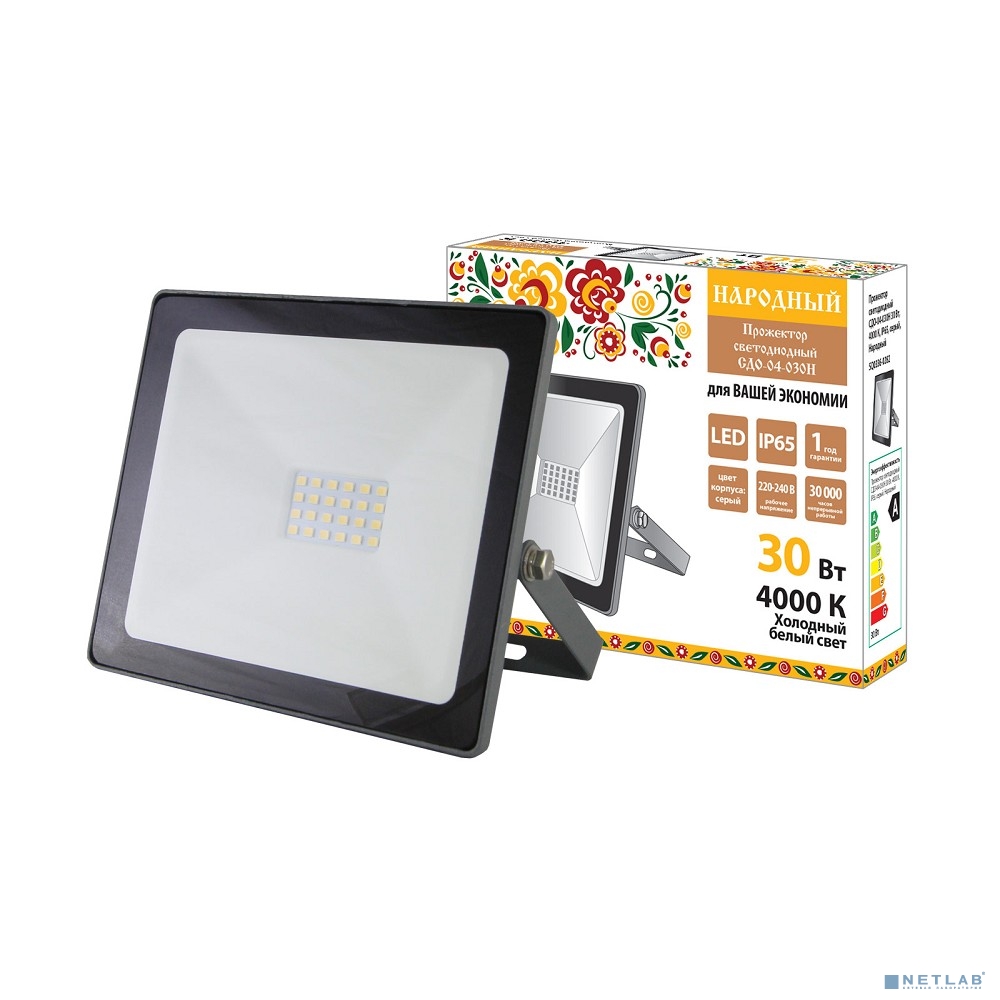 TDM SQ0336-0282 Прожектор светодиодный СДО-04-030Н 30 Вт, 4000 К, IP65, серый, Народный