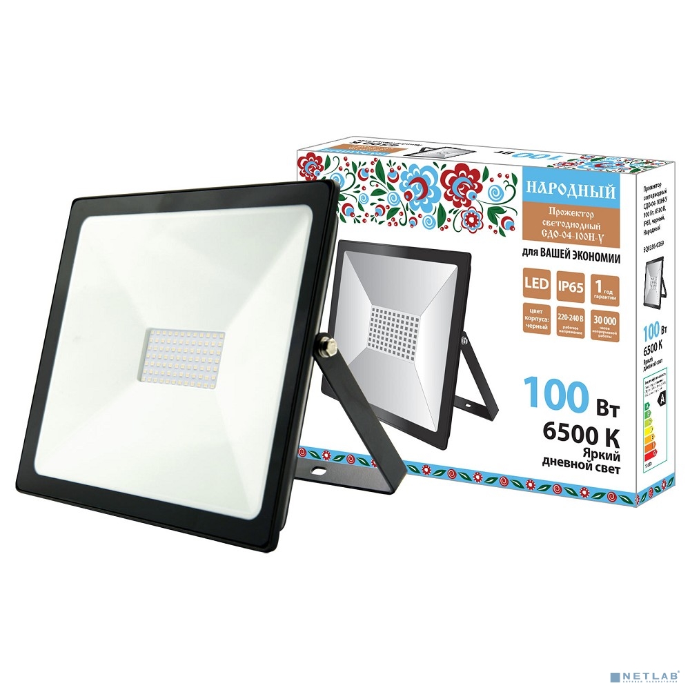 TDM SQ0336-0269 Прожектор светодиодный СДО-04-100Н-У 100 Вт, 6500 К, IP65, черный, Народный