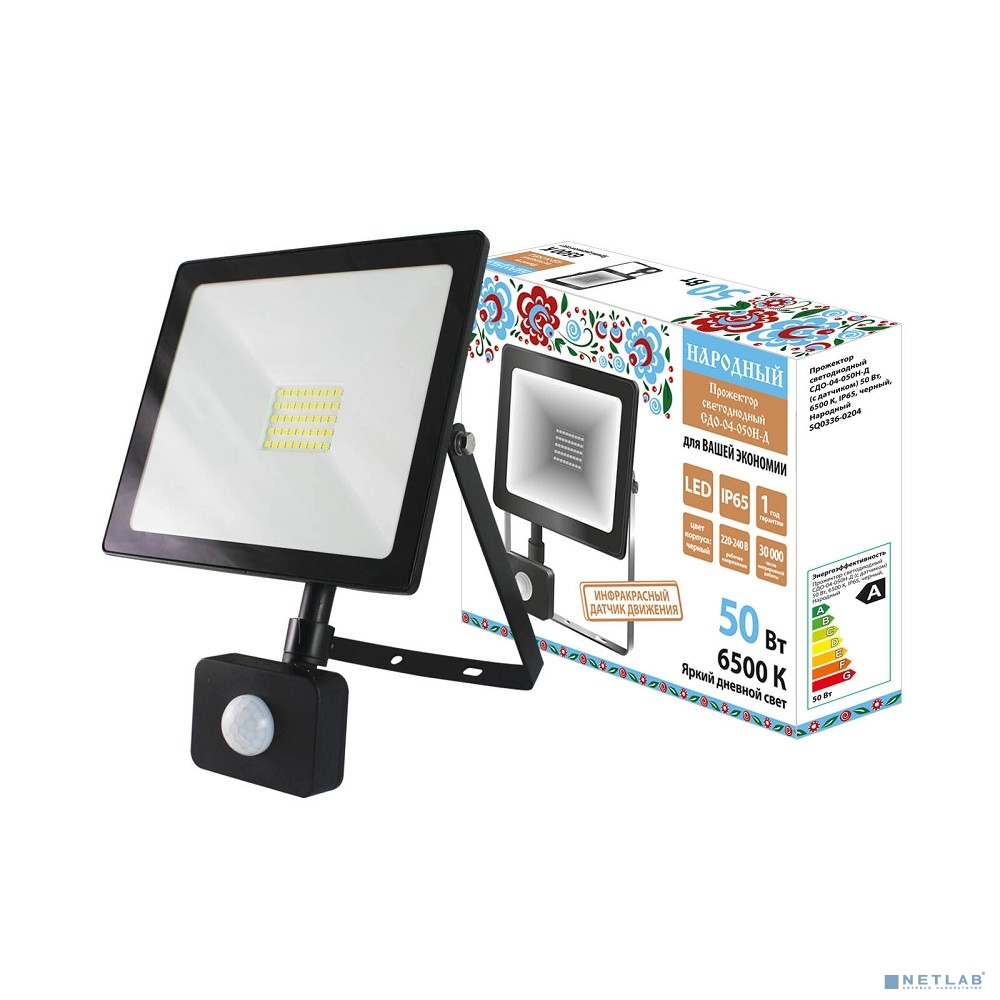 TDM SQ0336-0204 Прожектор светодиодный СДО-04-050Н-Д (с датчиком) 50 Вт, 6500 К, IP65, черный, Народный
