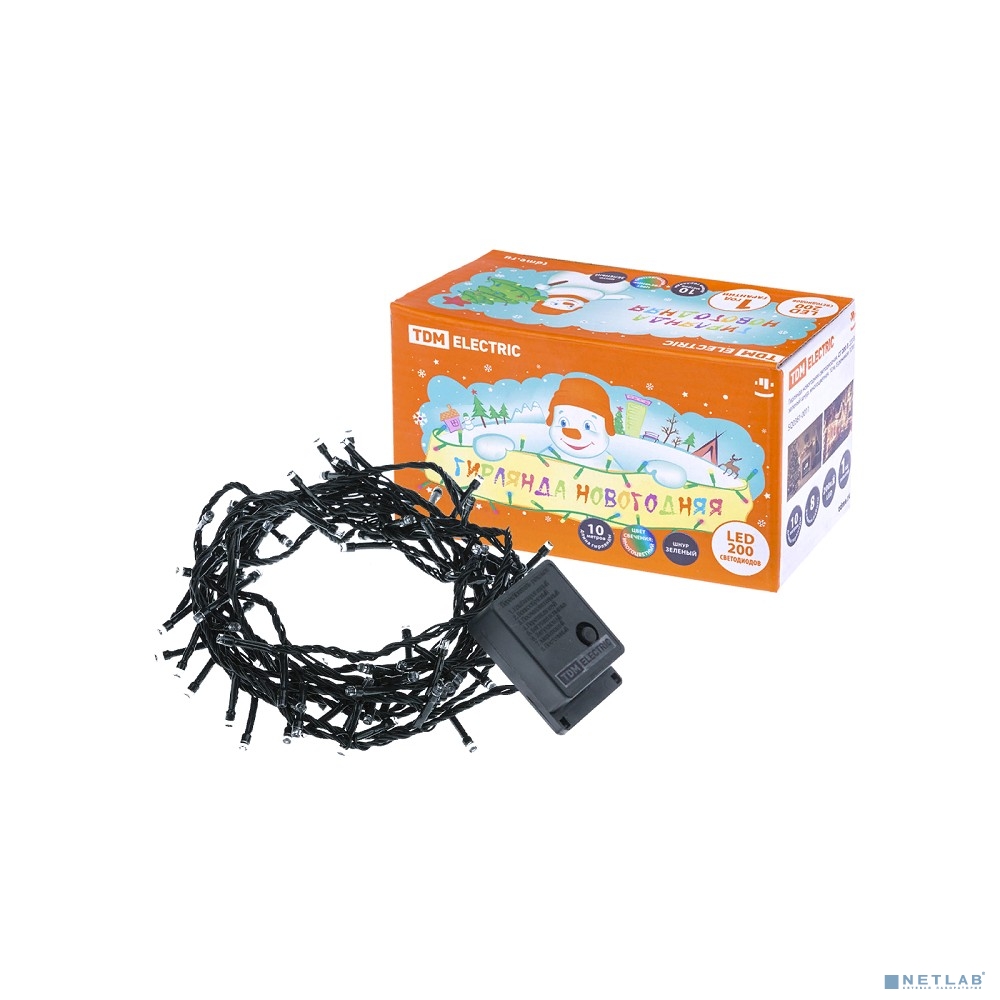 TDM SQ0361-0011 Гирлянда новогодняя светодиодная, СГ 200 З, 220 В, зеленый шнур, многоцветная, 10 м, 8 режимов