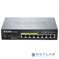 D-Link DGS-1008P/F1A Неуправляемый коммутатор с 8 портами 10/100/1000Base-T (4 порта PoE 802.3af/at, PoE-бюджет 80 Вт)