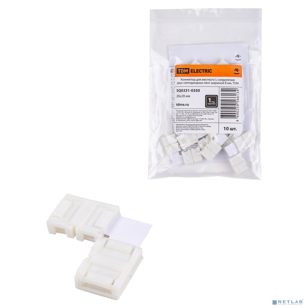 TDM SQ0331-0350 Коннектор для жесткого L-соединения двух светодиодных лент шириной 8 мм,