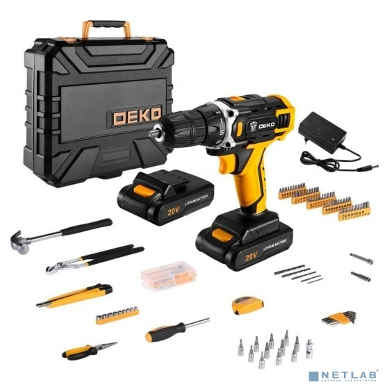 Аккумуляторная дрель-шуруповерт DEKO DKCD20FU-Li в кейсе + набор 195 инструментов для дома, 20В, 2х2.0Ач [063-4135]