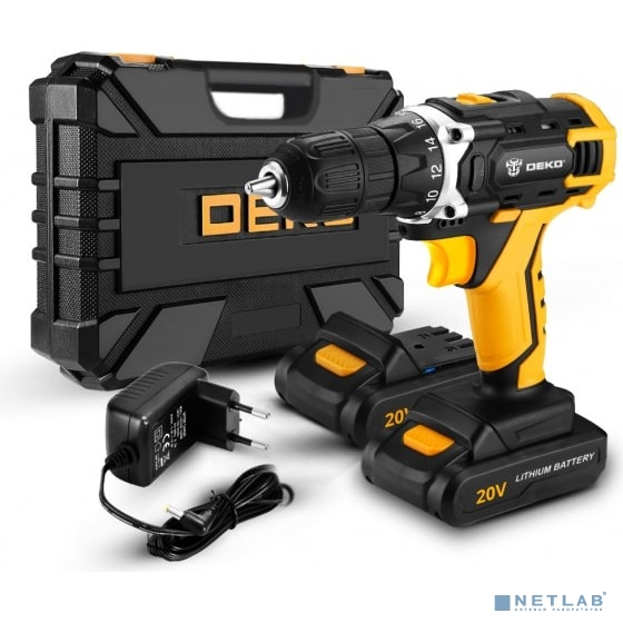 Аккумуляторная дрель-шуруповерт DEKO DKCD20FU-Li в кейсе + набор 63 инструмента для дома, 20В, 2х1.5Ач [063-4103]