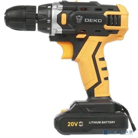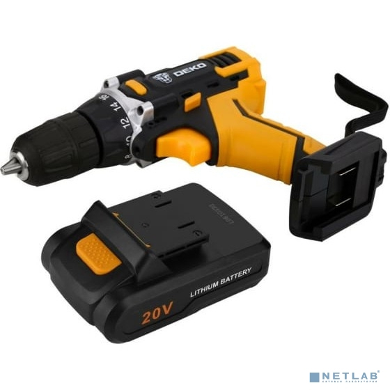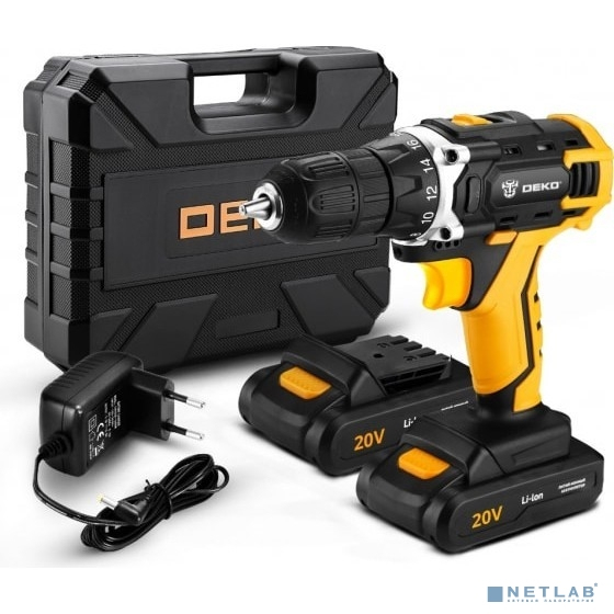 Аккумуляторная дрель-шуруповерт DEKO DKCD20FU-Li в кейсе + набор 63 инструмента для дома, 20В, 2х2.0Ач [063-4093]