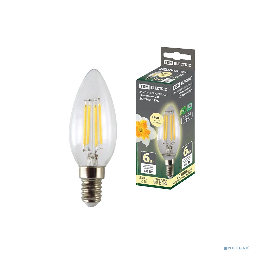 TDM SQ0340-0275 Лампа светодиодная "Филамент" С37-6 Вт-230 В-2700 К–Е14