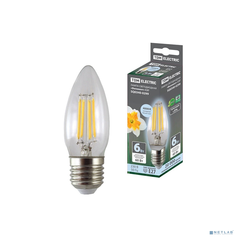 TDM SQ0340-0299 Лампа светодиодная "Филамент" С37-6 Вт-230 В-4000 К–Е27