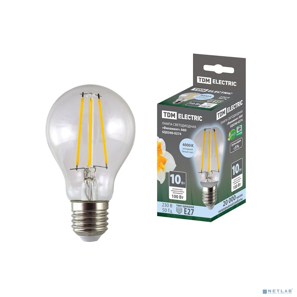 TDM SQ0340-0274 Лампа светодиодная "Филамент" А60-10 Вт-230 В-4000 К–Е27