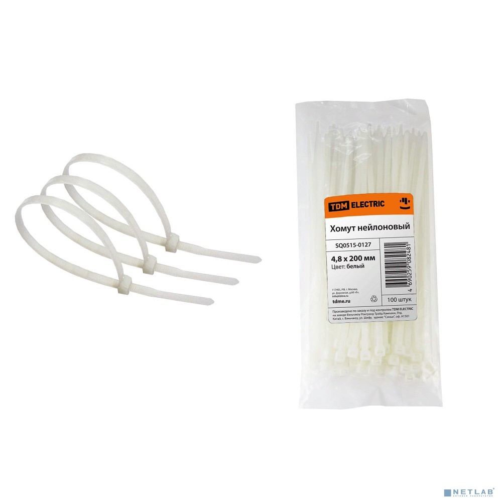 TDM SQ0515-0127 Хомут 4,8х200мм нейлон (белый) (100шт)
