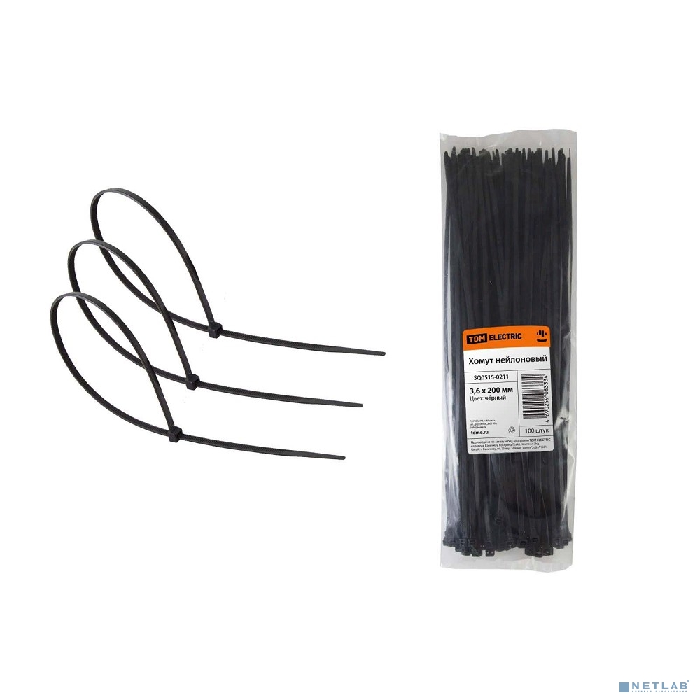TDM SQ0515-0211 Хомут 3,6х200мм нейлон (черный) (100шт)