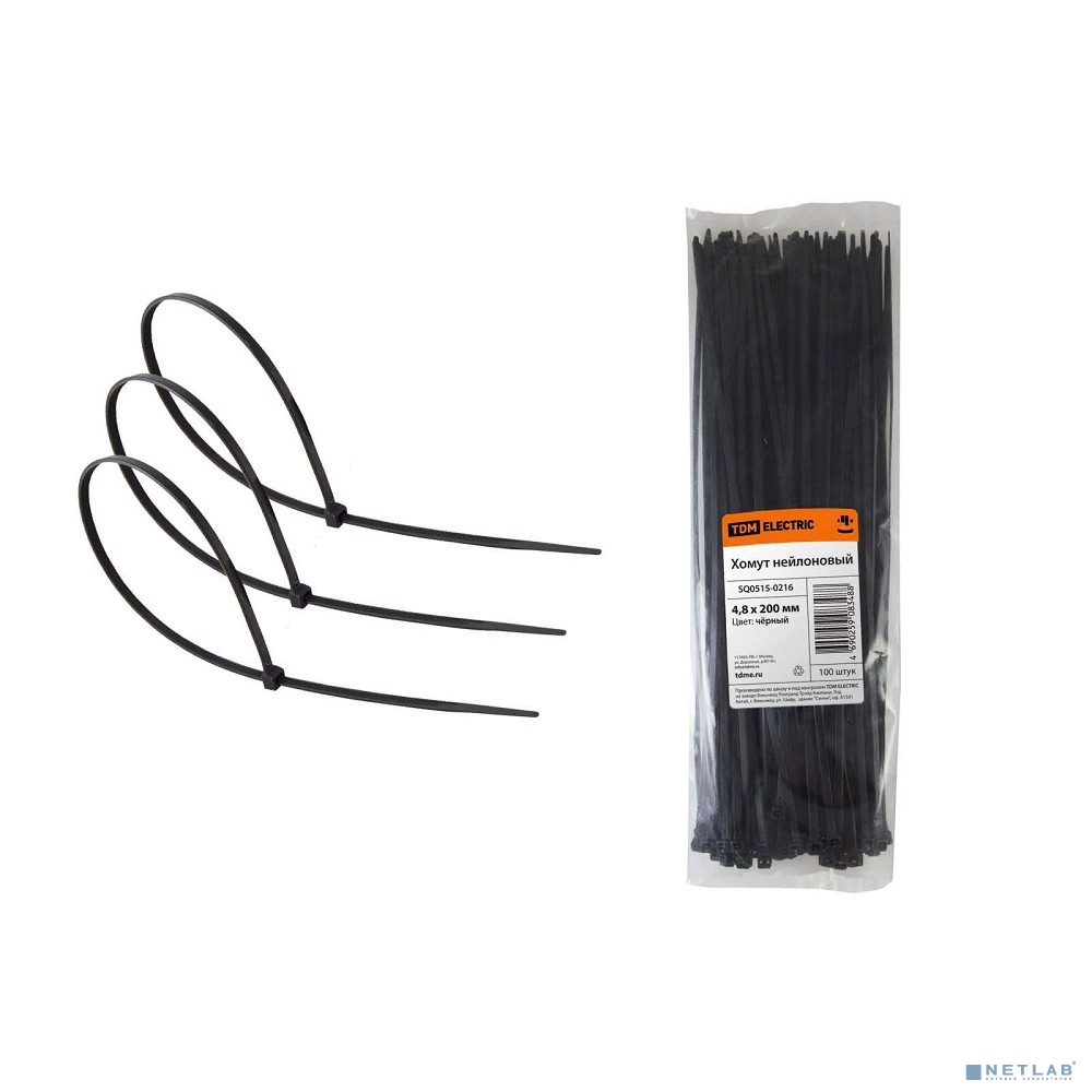 TDM SQ0515-0216 Хомут 4,8х200мм нейлон (черный) (100шт)