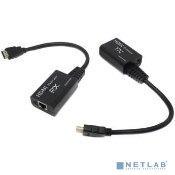ORIENT VE044, HDMI extender (Tx+Rx), активный удлинитель до 60 м по витой паре Cat5e/6, HDMI 1.4а, 1080p@60Hz/3D, HDCP, питание от внешнего БП 5В/1А, встроенные кабели HDMI M (31094)