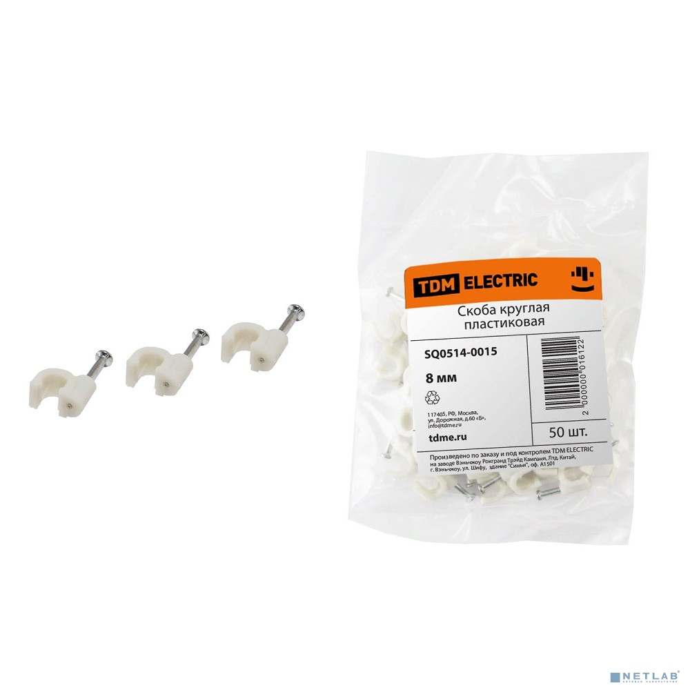 TDM SQ0514-0015 Скоба 8мм круглая пластиковая (белая) (50шт)