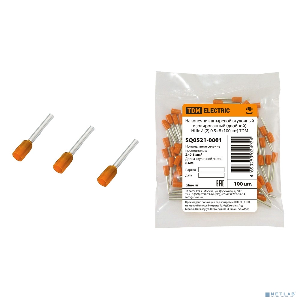 TDM SQ0521-0001 Наконечник штыревой втулочный изолированный (двойной) НШвИ (2) 0,5?8 (100 шт)