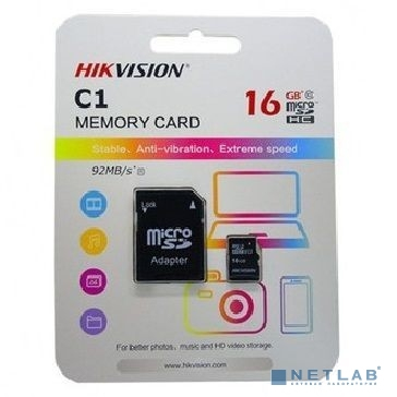 Micro SecureDigital 16GB Hikvision HS-TF-C1(STD)/16G/Adapter <HS-TF-C1(STD)/16G/Adapter> (с SD адаптером) R/W Speed 90/12MB/s