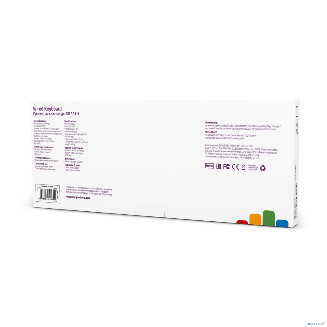 CBR KB 301M Black USB, Клавиатура 107+9 доп. кл., 1,8 м