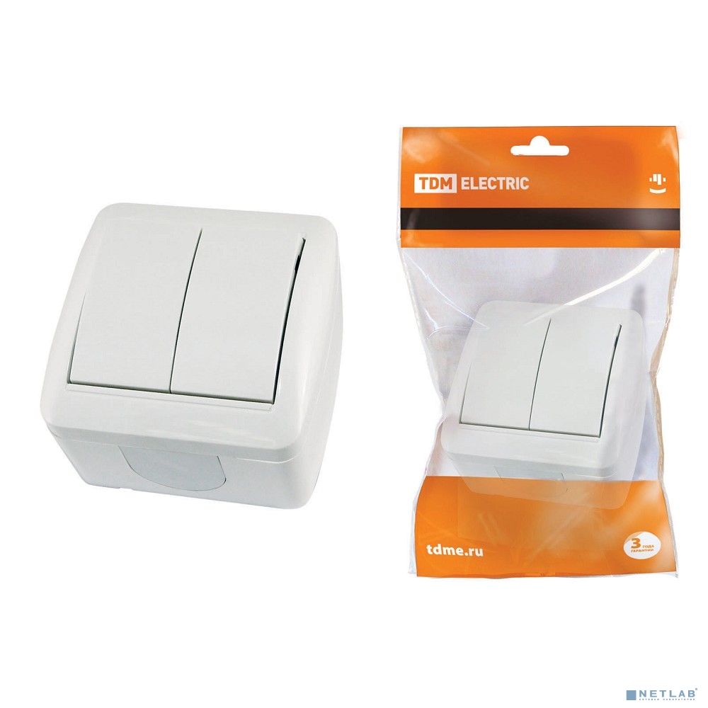 TDM SQ1818-0002 Выключатель 2-кл. открытой установки IP44 10А белый "Селигер"