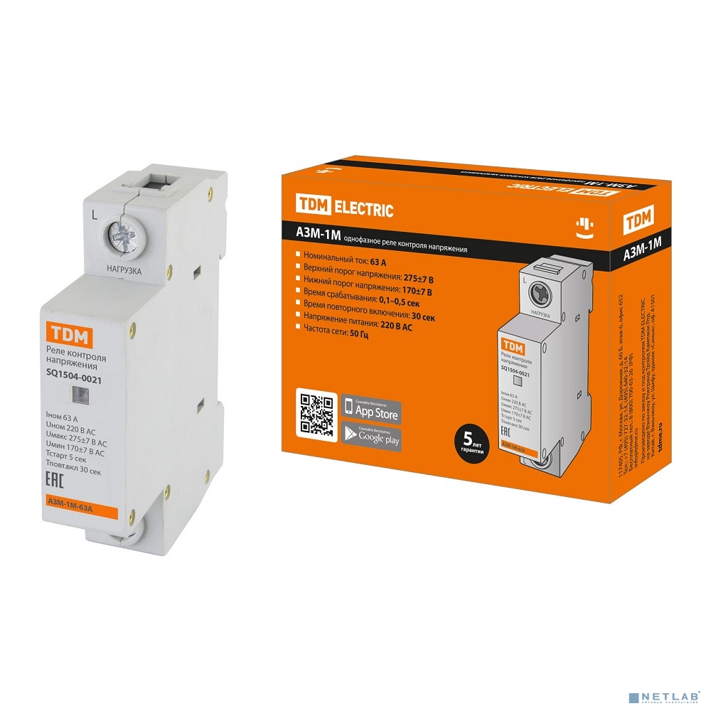 TDM SQ1504-0021 Реле напряжения 1ф АЗМ-1М 1-модуль 63А-230В