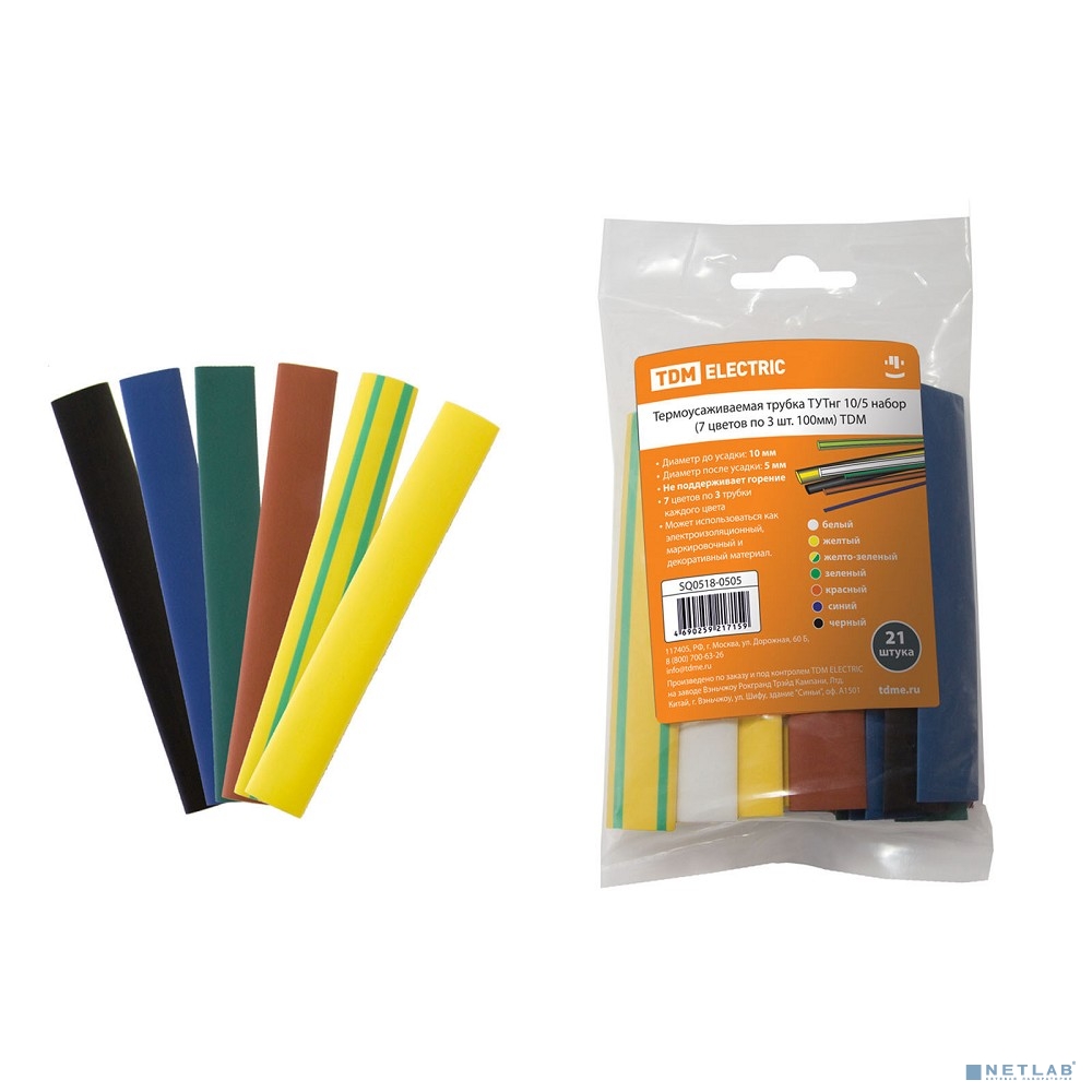 TDM SQ0518-0505 Термоусаживаемая трубка ТУТнг 10/5 набор (7 цветов по 3 шт. 100мм)