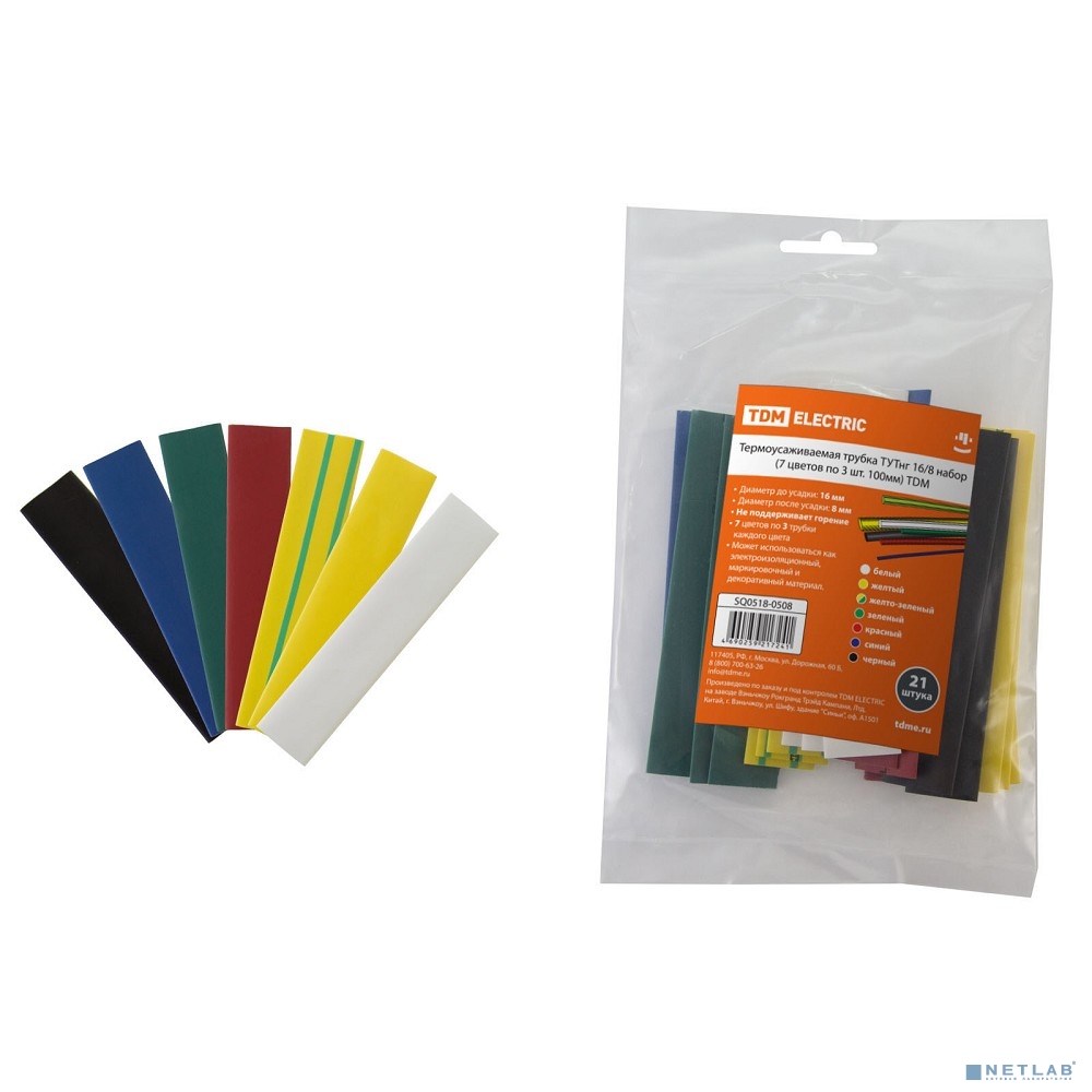 TDM SQ0518-0508 Термоусаживаемая трубка ТУТнг 16/8 набор (7 цветов по 3 шт. 100мм)