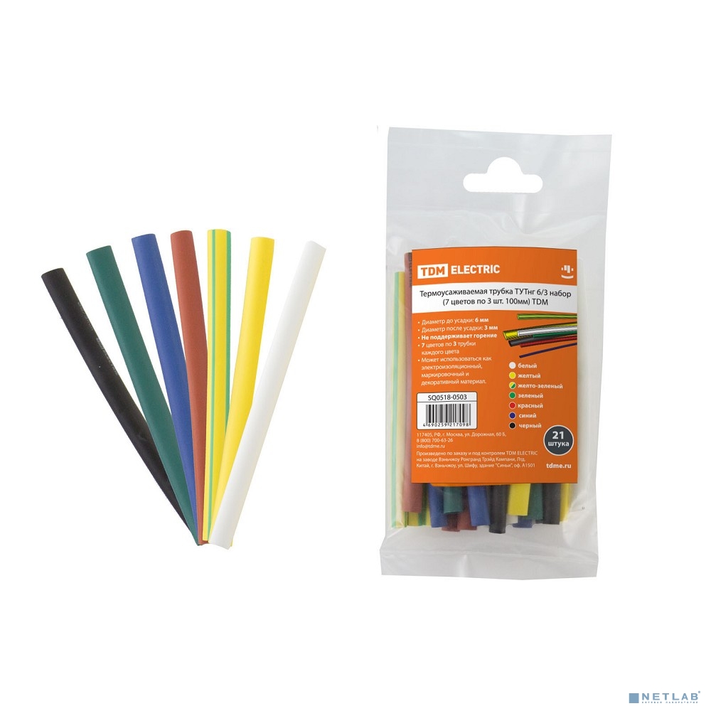 TDM SQ0518-0503 Термоусаживаемая трубка ТУТнг 6/3 набор (7 цветов по 3 шт. 100мм)