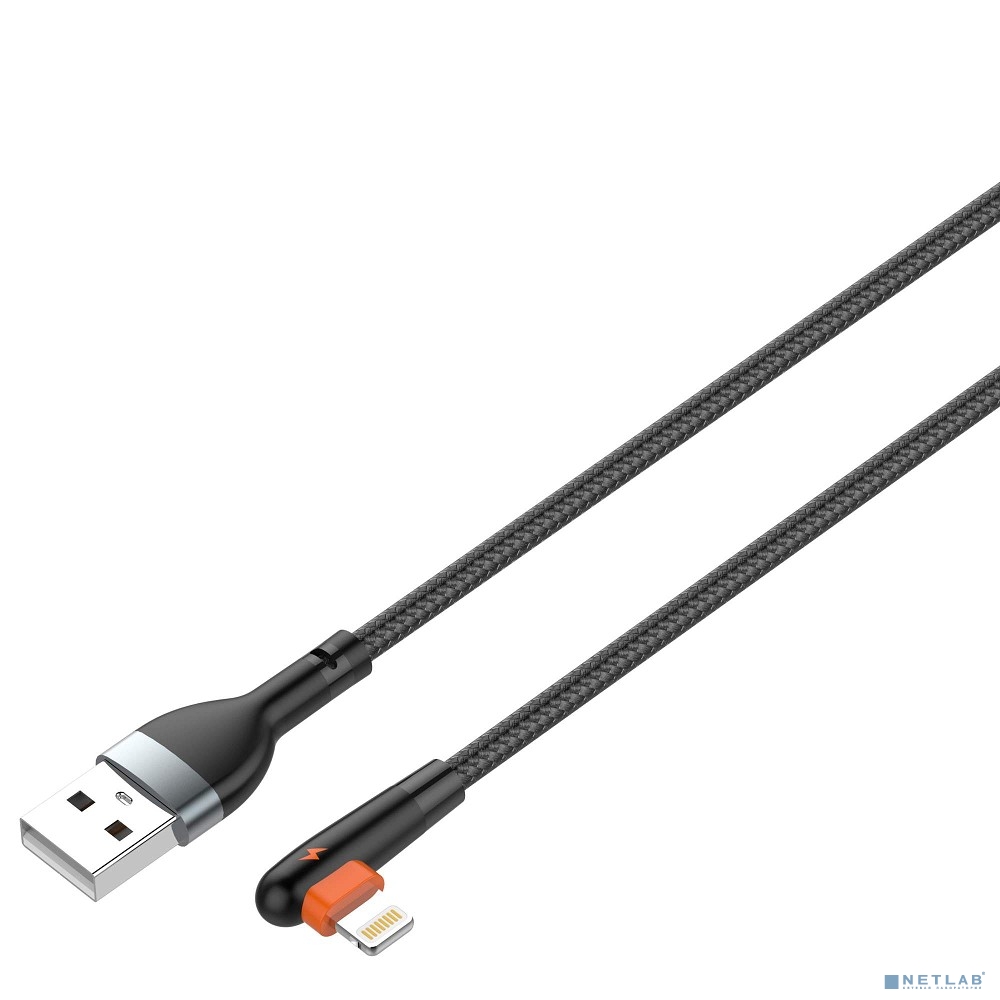 LDNIO LS561/ USB кабель Lightning/ 1m/ 2.4A/ медь: 86 жил/ Угловой коннектор/ Нейлон/ Black&Orange