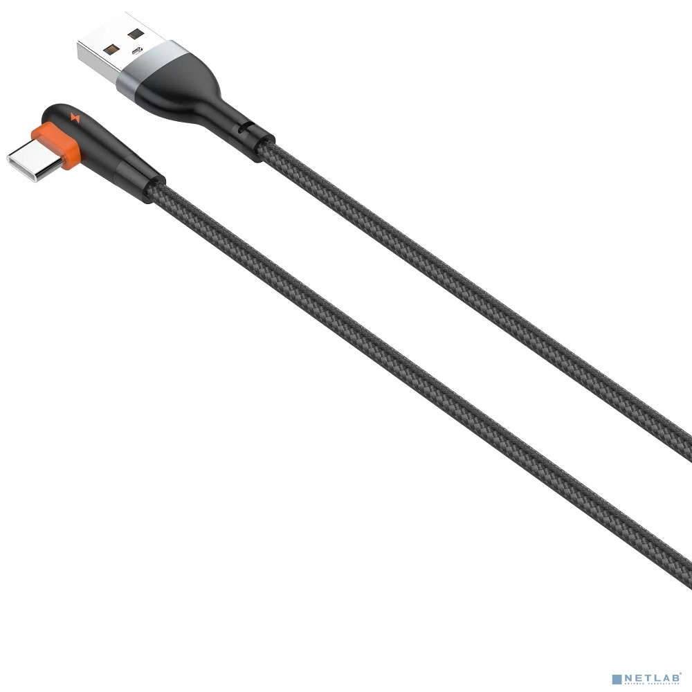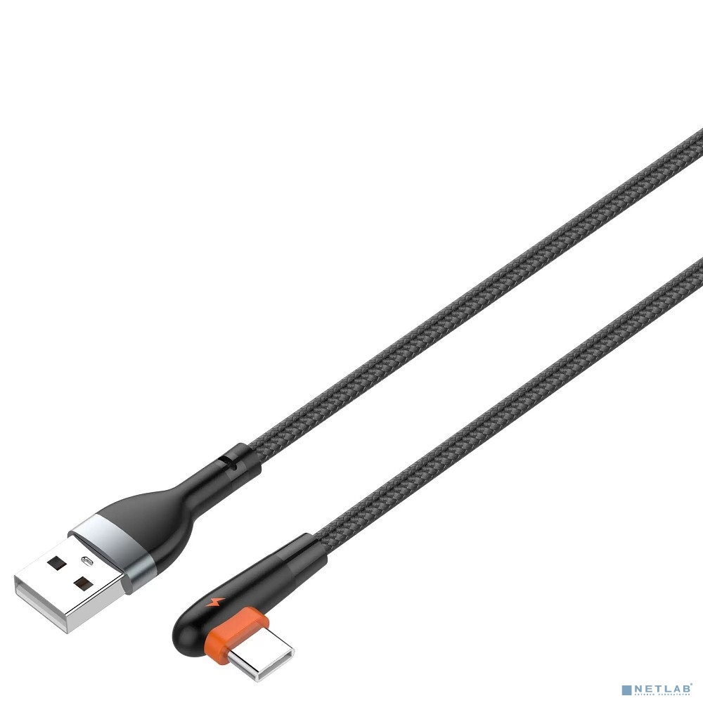 LDNIO LS561/ USB кабель Type-C/ 1m/ 2.4A/ медь: 86 жил/ Угловой коннектор/ Нейлон/ Black&Orange