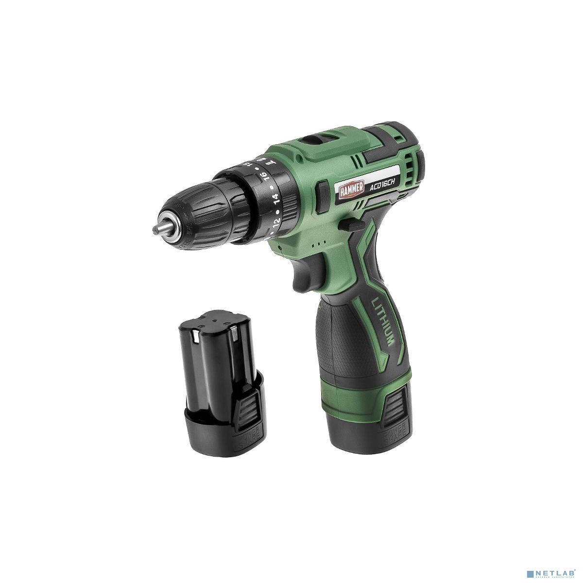 Hammer Аккум.дрель ударная ACD16CH 16В 2x 2Ач LiION 10мм 0-350/0-1350об/мин, 30 Нм, кейс [824160]