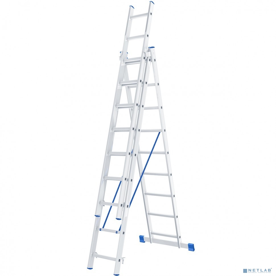 СИБРТЕХ Лестница, 3 х 9 ступеней, алюминиевая, трехсекционная, Россия [97819]