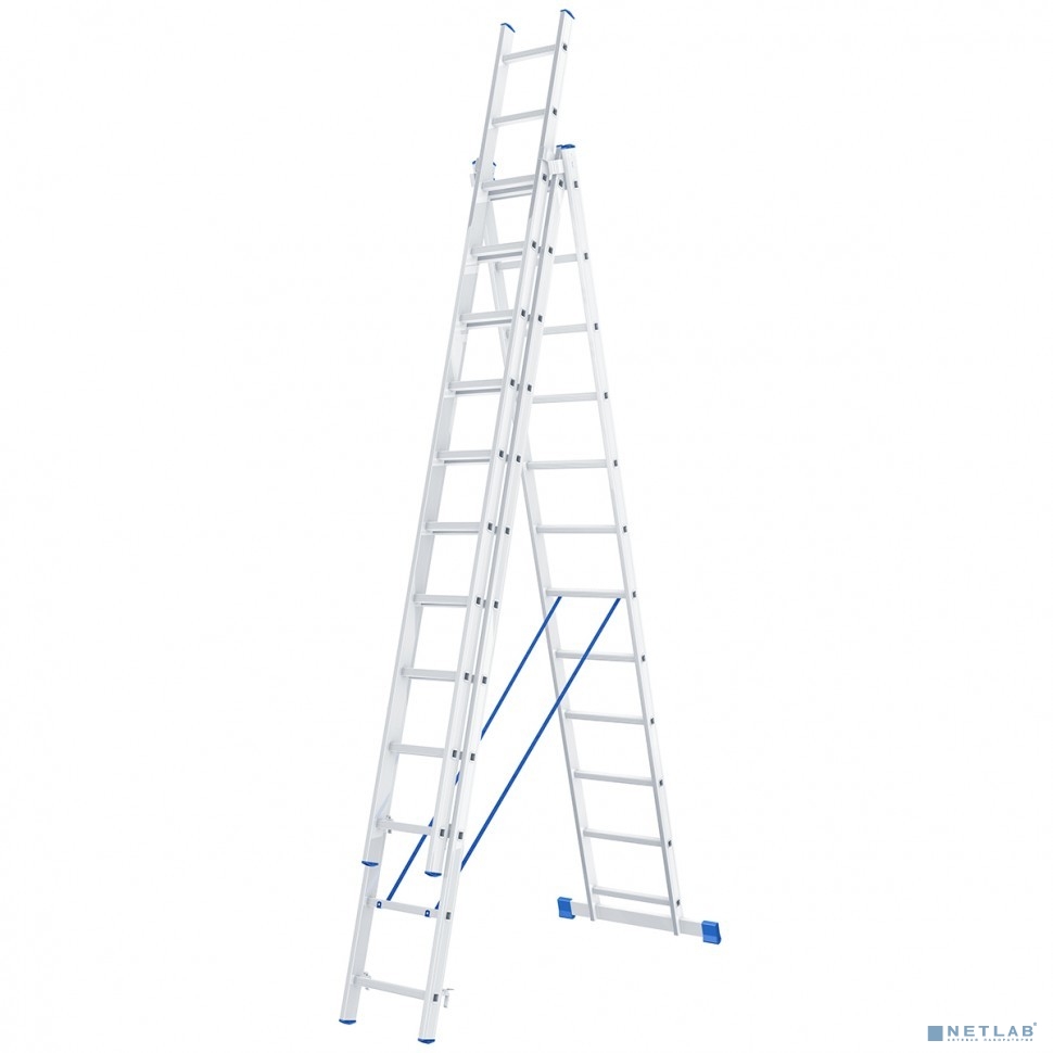 СИБРТЕХ Лестница, 3 х 12 ступеней, алюминиевая, трехсекционная, Россия [97822]