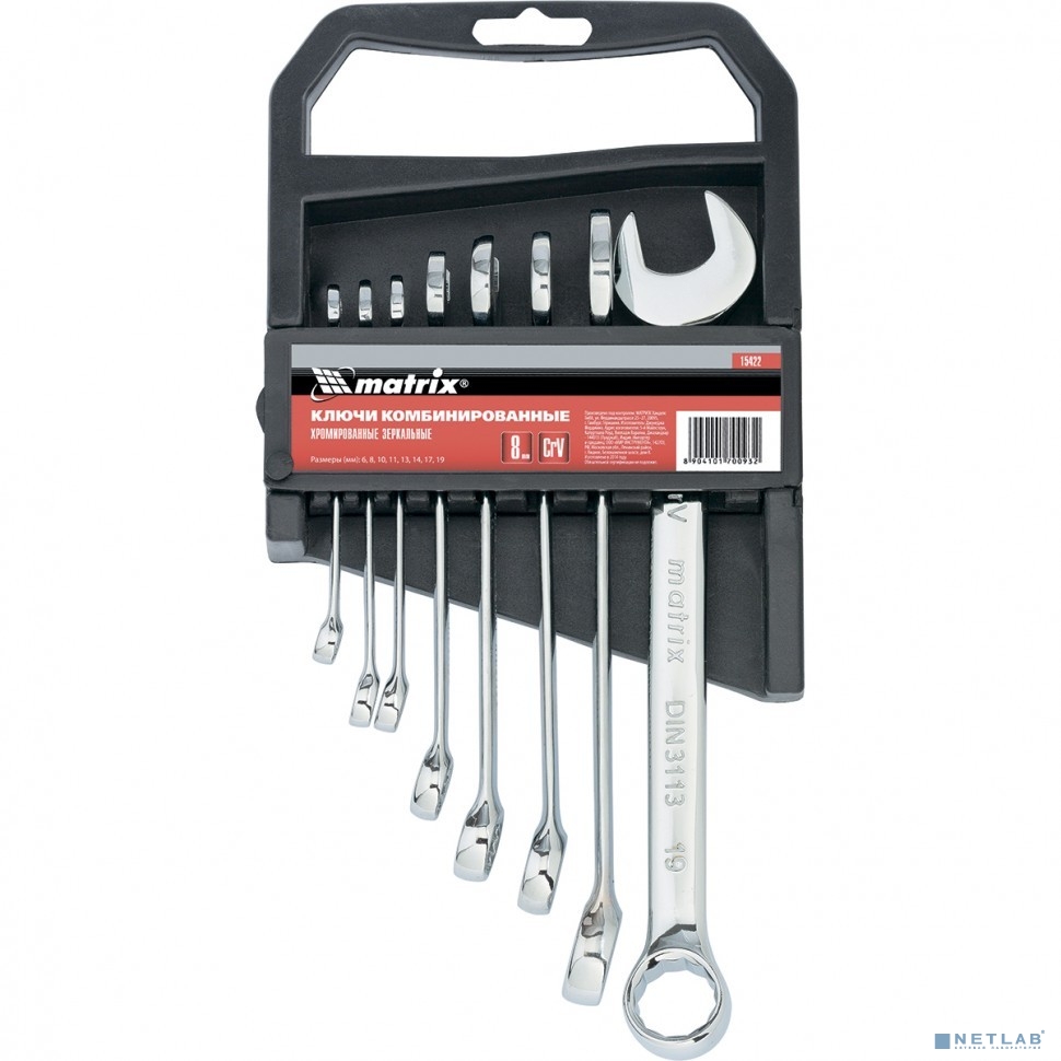 MATRIX Набор ключей комбинированных, 6 - 19 мм, 8 шт., CrV, полированный хром [15422]