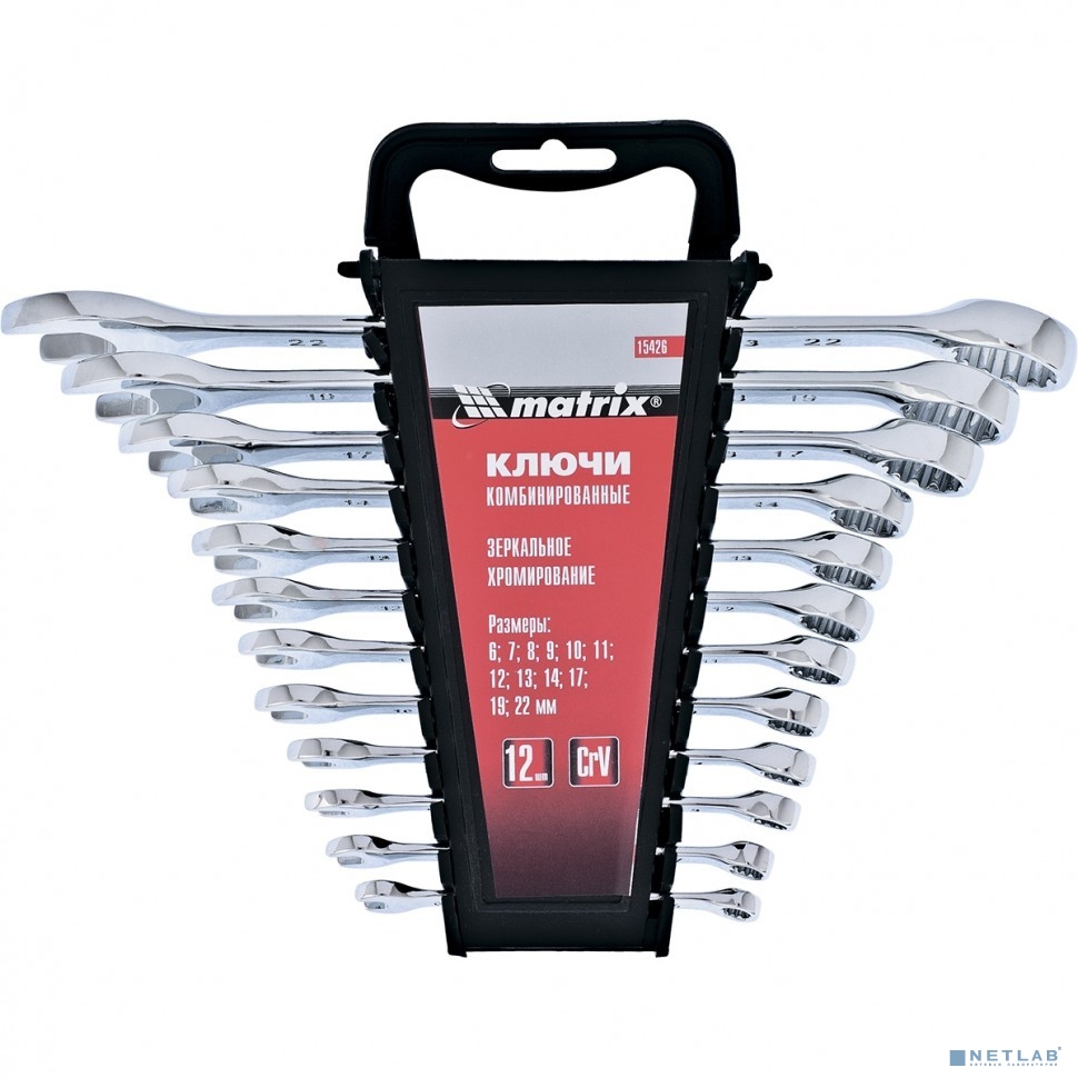 MATRIX Набор ключей комбинированных, 6 - 22 мм, 12 шт., CrV, полированный хром [15426]