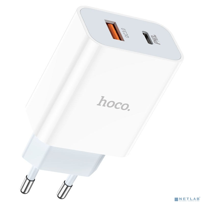 HOCO HC-66076 C97A/ Сетевое ЗУ/ PD + QC 3.0/ 2 USB: Type-A + Type-C/ Выход: 5V_9V_12V, 20W/ White