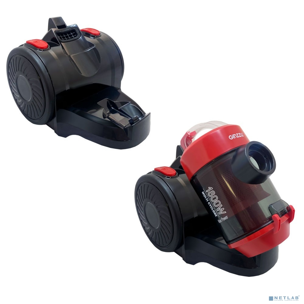 Ginzzu VS427 Пылесос, 1800 Вт, циклонный фильтр, черный/красный