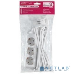 ARTSTYLE CL-C35GW Сетевой удлинитель (белый, 3 гнезда, длина провода 5м, 220В, 16А, с заземлением, без выключателя)