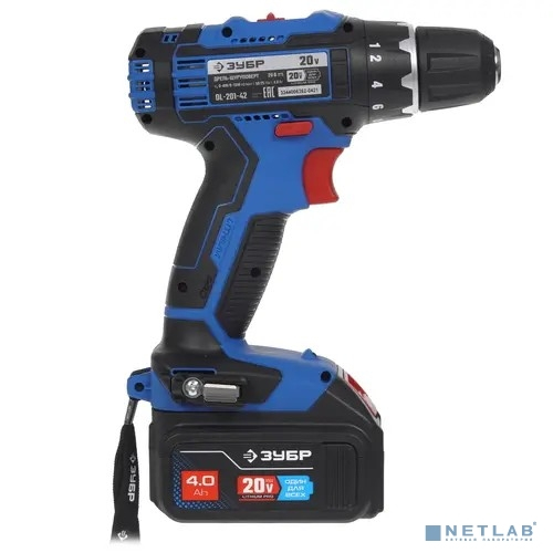 ЗУБР 20В, 2 АКБ (4Ач), в кейсе, дрель-шуруповерт, Профессионал. DL-201-42