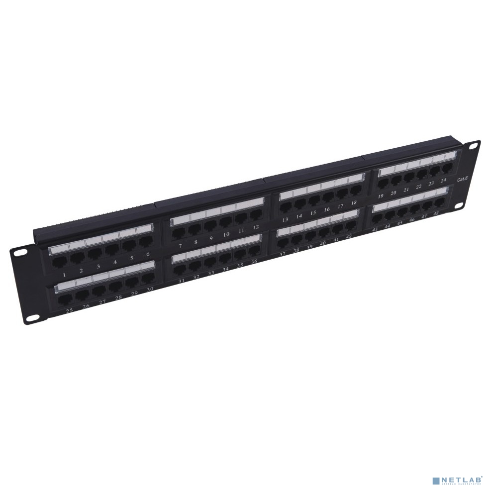 Патч-панель 19" NEOMAX [NM-PP-2U48P-UC5E-DB-109-BK] 2U, 48 портов, кат.5E, UTP, Dual IDC, кабельный органайзер, цвет черный