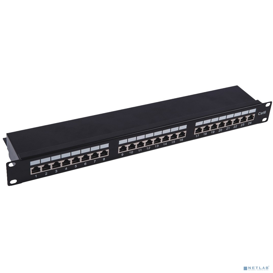 Патч-панель 19" NEOMAX [NM-PP-1U24P-SC6-D-104-BK] 1U, 24 порта, кат.6, STP, Dual IDC, цвет черный