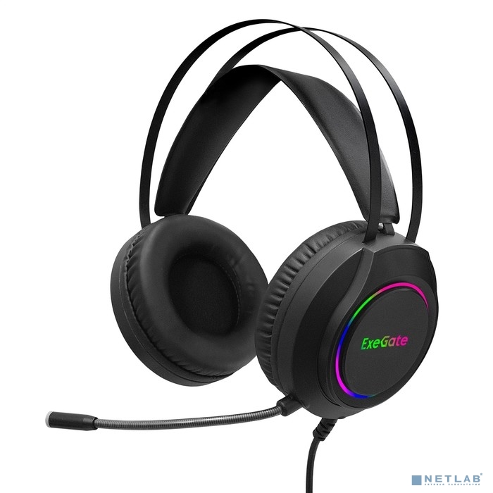 ExeGate Cosmos HS-702GL (объемный звук 7.1, длина кабеля 2.5м, динамик 50мм, 20-20000Гц, RGB подсветка, USB интерфейс, регулировка громкости, Color Box)
