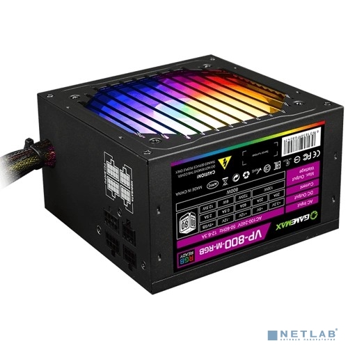 GameMax Блок питания ATX 800W VP-800-RGB-MODULAR 80+, Ultra quiet