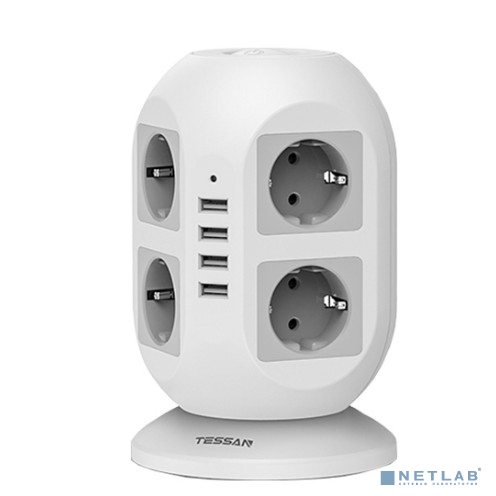 TESSAN JW402 Grey Сетевой фильтр с 8 розетками 220В и 4 USB портами с 2 кнопками питания {80001850}