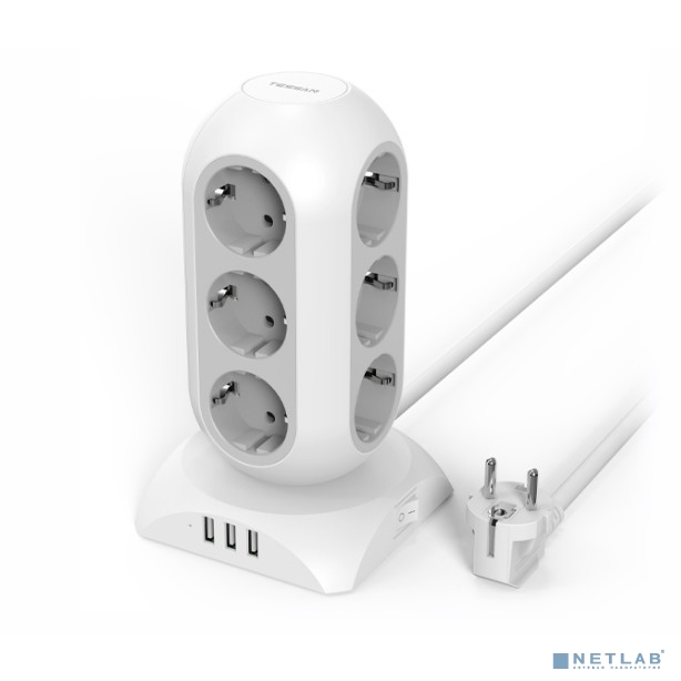 TESSAN TPS02-DE Grey Сетевой фильтр с 12 розетками 220В и 3 USB портами и кнопкой питания {80002501}