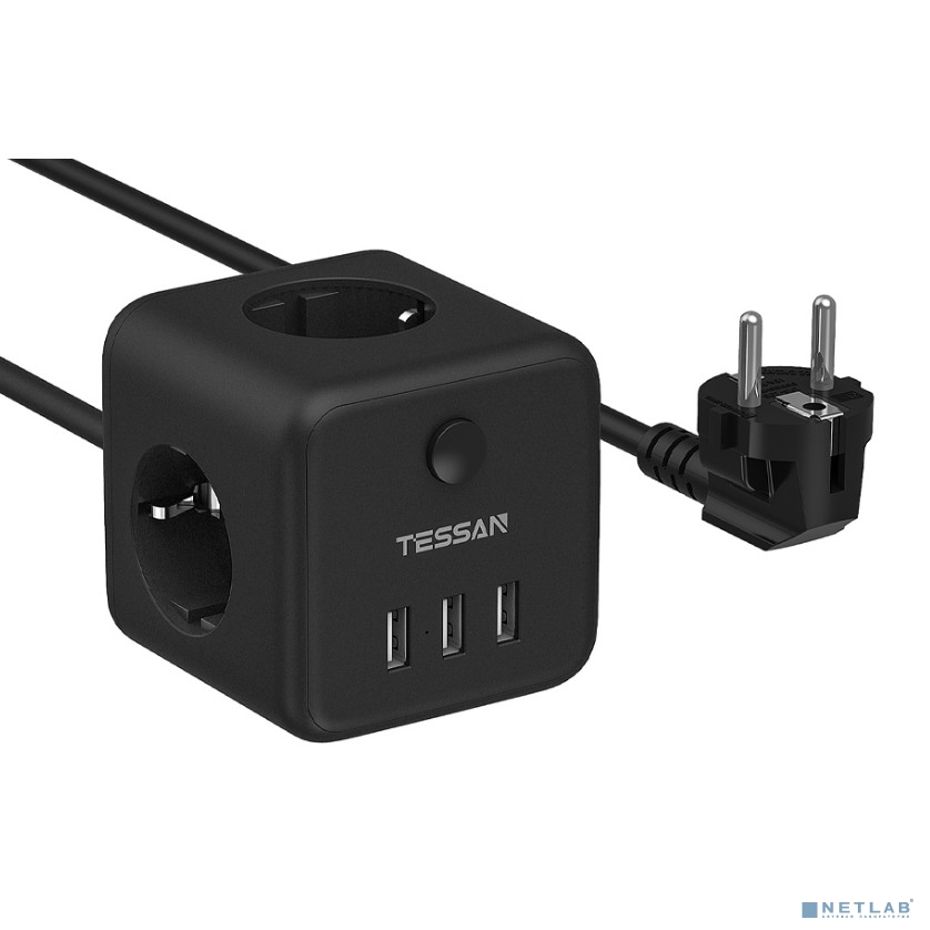 TESSAN TS-301 Black Сетевой фильтр с 3 розетками 220В и 3 USB портами и кнопкой питания {80001823}