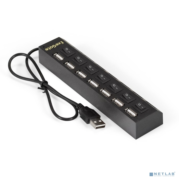Exegate EX293978RUS USB-Хаб (концентратор) ExeGate DUB-72SW (кабель-адаптер USB2.0 --> 7xUSB2.0, кнопки включения/отключения для каждого порта, Plug&Play, черный)